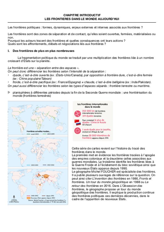 Chap Intro Frontieres I. Frontieres De Plus En Plus Nombreuses