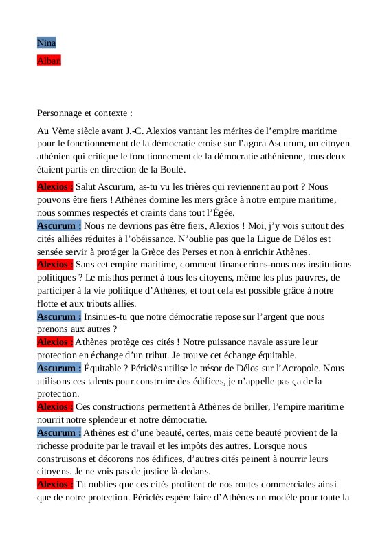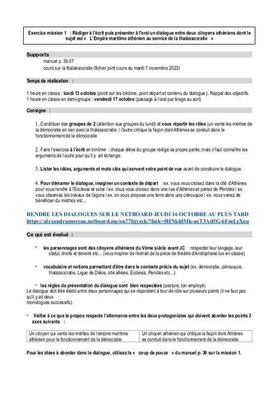 Consigne Dialogue Athènes thalassocratie